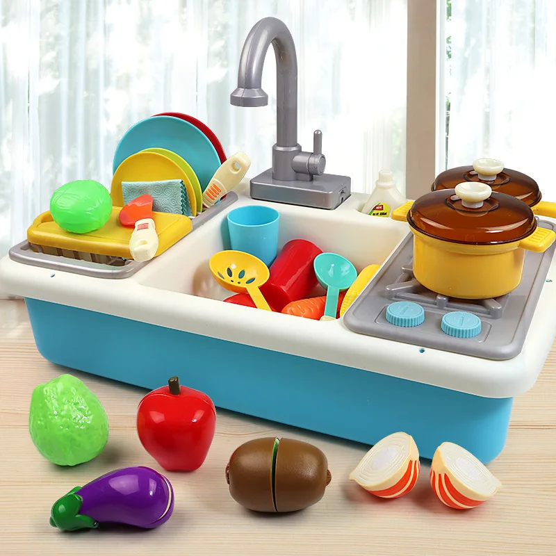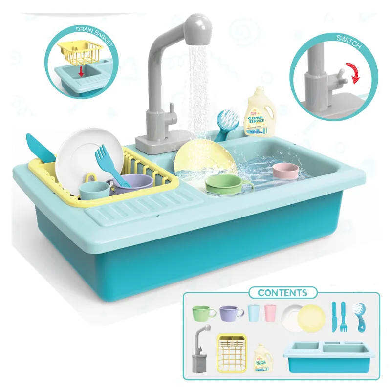BEST [Amoy] Children Play House Kitchen Electric Toys Men And Women Kids Dishwasher Pool Washing Stand P