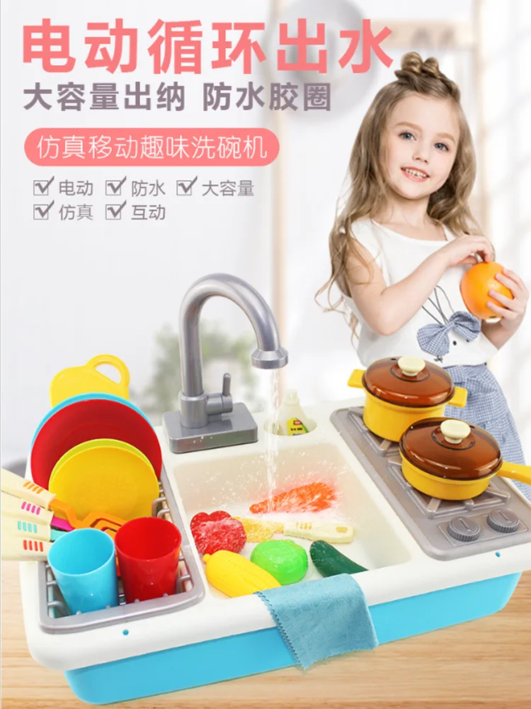 TOP [Amoy] Children Play House Kitchen Electric Toys Men And Women Kids Dishwasher Pool Washing Stand P