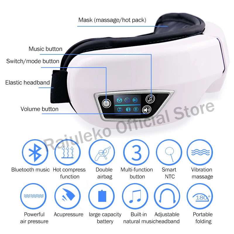 TOP Bluetooth Rechargeable Wireless Eye Massager Pressotherapy for Eyes Visual Protection Machine Vibra